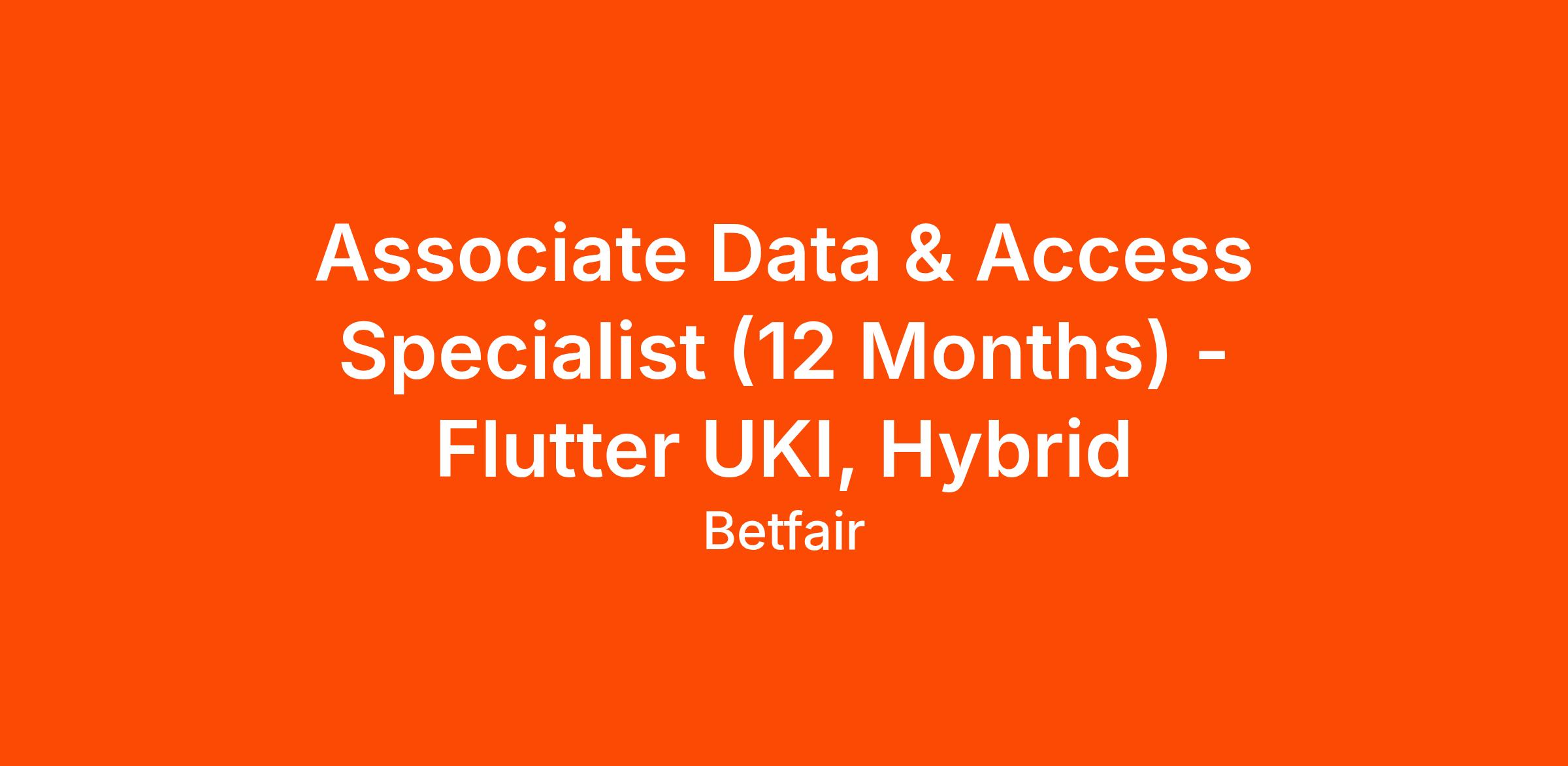 Associate Data & Access Specialist (12 Months) - Flutter UKI, Hybrid