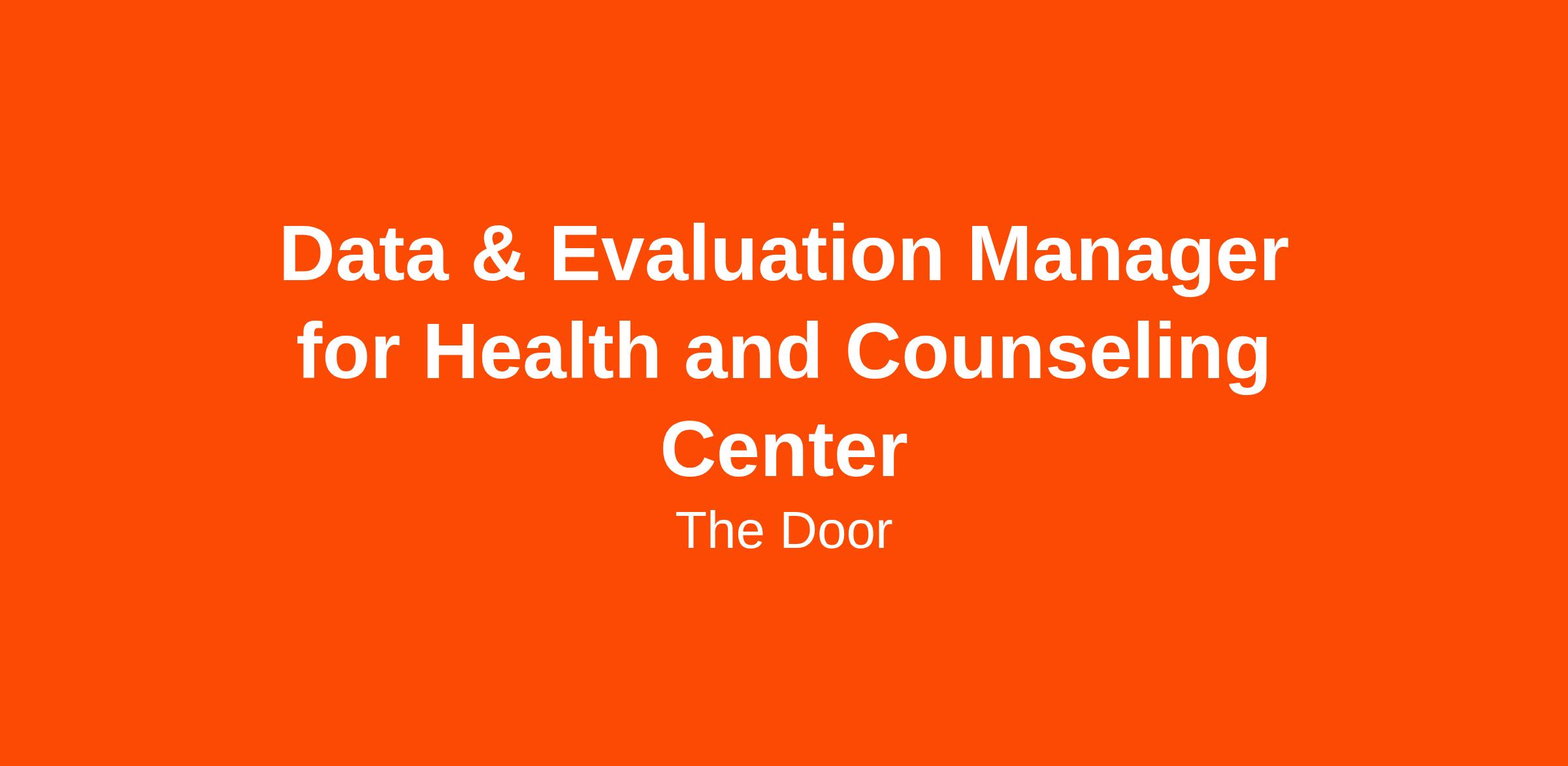 Overview: Under the supervision of the Assistant of Data & Reporting, the Data & Evaluation Manager will support the Adolescent Health Center and the Counseling Center in maintaining the eClinicalWorks system, generating funder reports, training staff on data governance best practices, implementing new technology solutions, and other data tasks. The Manager will act as a dedicated liaison between the Health and Counseling Center and the Data and Program Evaluations team; actively seeking opportunities for programmatic innovation through technology and analytics.