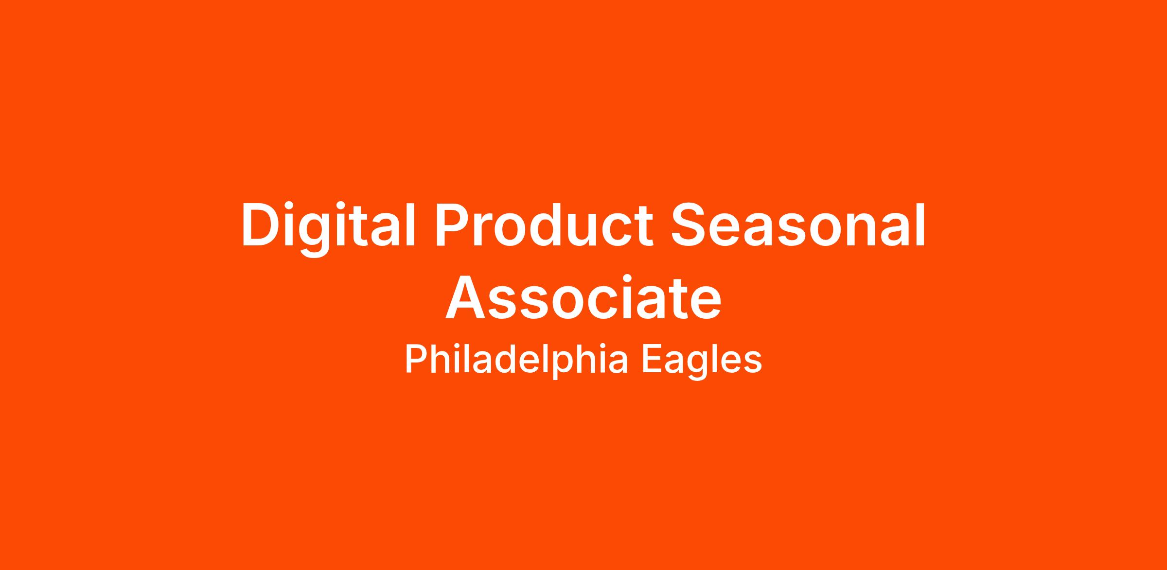 The Philadelphia Eagles are currently seeking a Digital Product Seasonal Associate. This position is looking for candidates who have a strong passion for innovation, excellent communication skills, and a desire to explore the correlation between technology and user-centric design. In this role, the associate will be working closely with a highly skilled team to provide support to various business-related departments (Eagles Entertainment, Sponsorship, Marketing).