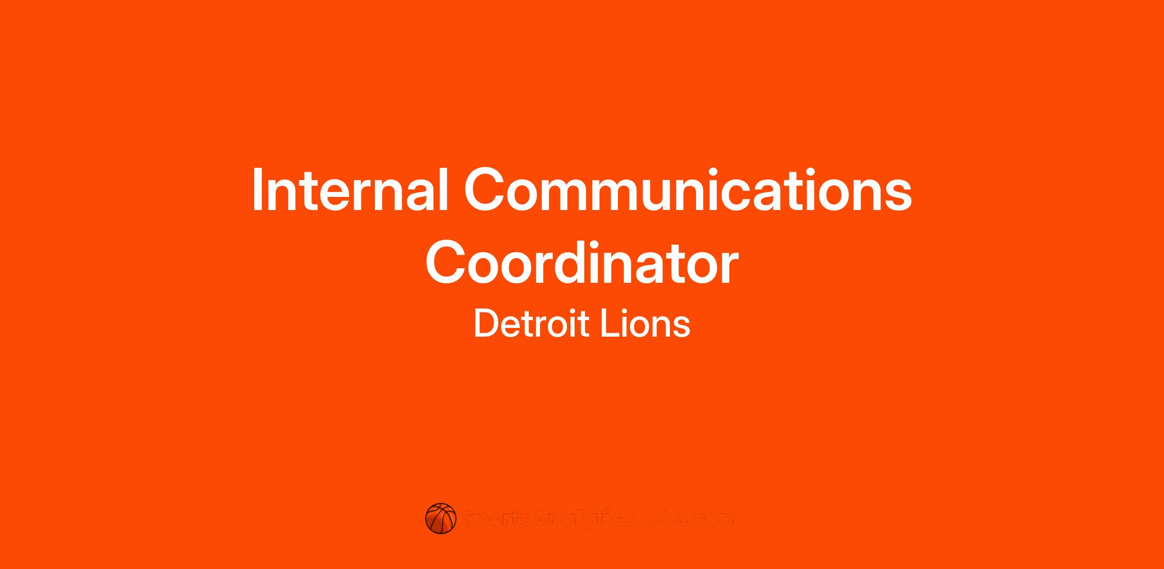 The Internal Communications Coordinator will lead the internal and employee communications efforts of the Detroit Lions, most specifically through the administration of the Intranet, which is the internal communications website, and employee storytelling. The Internal Communications Coordinator will also assist with achieving the goals of the corporate communications department.