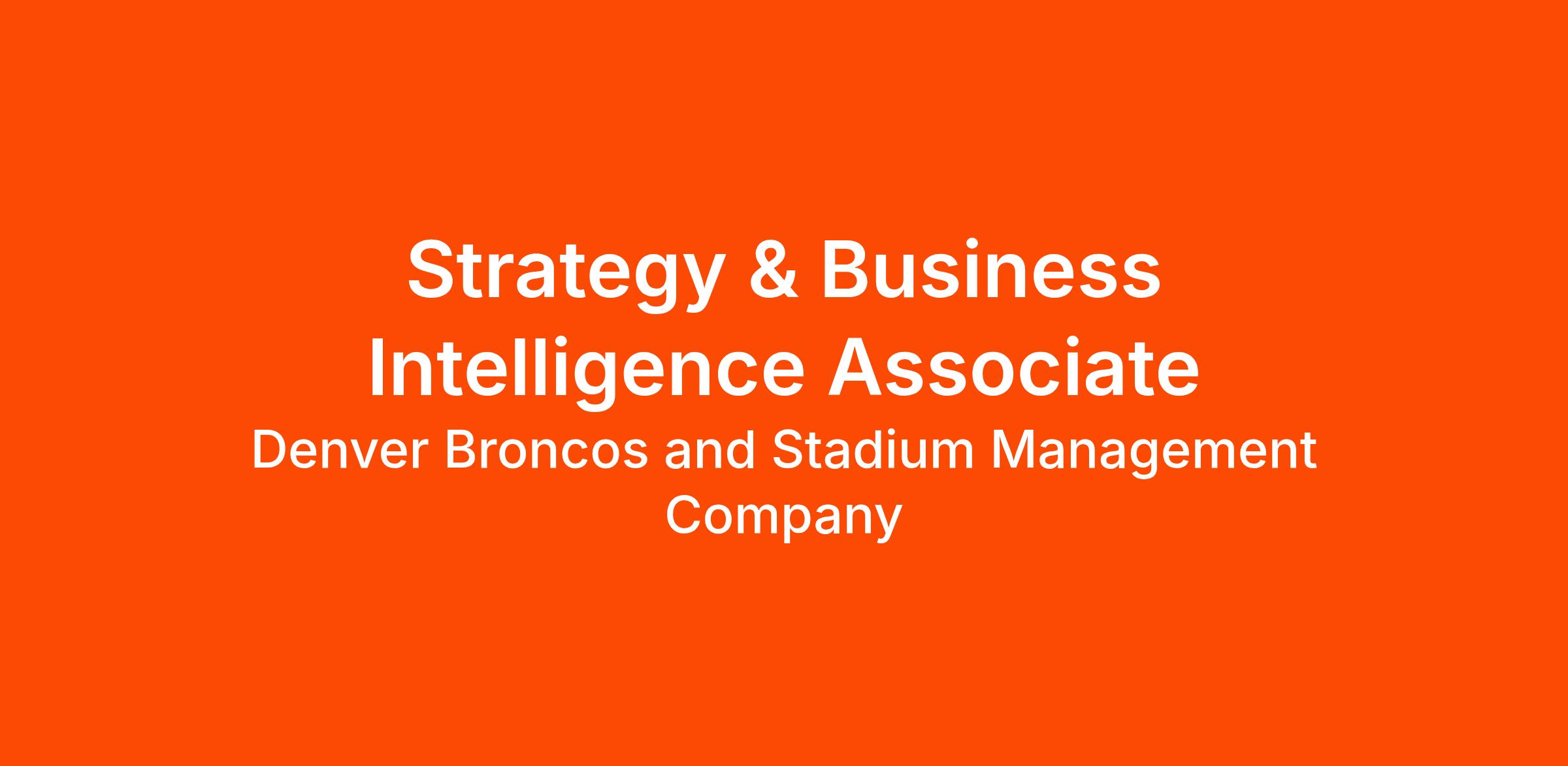 Job Summary: The Strategy and BI&A Associate will sit at the integration point between the two business units, helping support both functions drive the long-term vision and goals of the Denver Broncos. You will be a key partner to various business units, contributing to essential strategy deliverables, supporting our retail and F&B operations, and tackling high-priority projects that shape the organization's direction. This unique position offers hands-on experience in both strategic planning and data analysis, providing a comprehensive understanding of how these functions work together to achieve organizational goals within the dynamic world of professional sports.