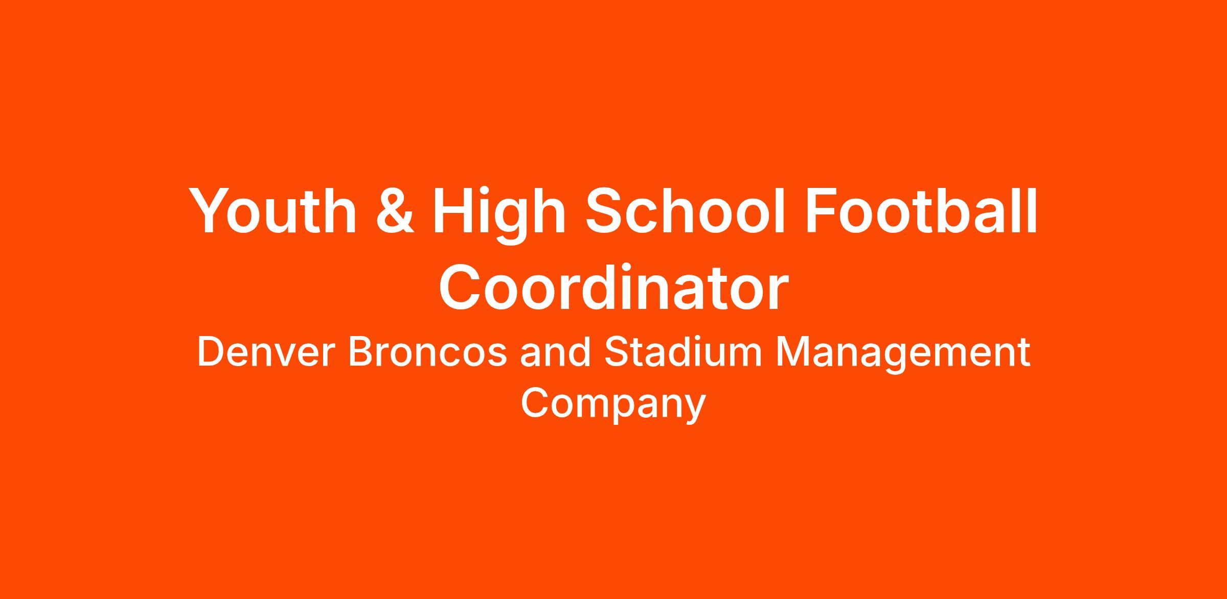JOB SUMMARY: The Youth & High School Football Coordinator will advance the mission of the Denver Broncos Foundation by supporting the planning and execution of all youth and high school football initiatives, including flag and tackle programs and activations. This role will assist with event logistics, communications, and on-site operations, while also providing essential administrative support to ensure the departmentβs programs are executed efficiently and effectively.